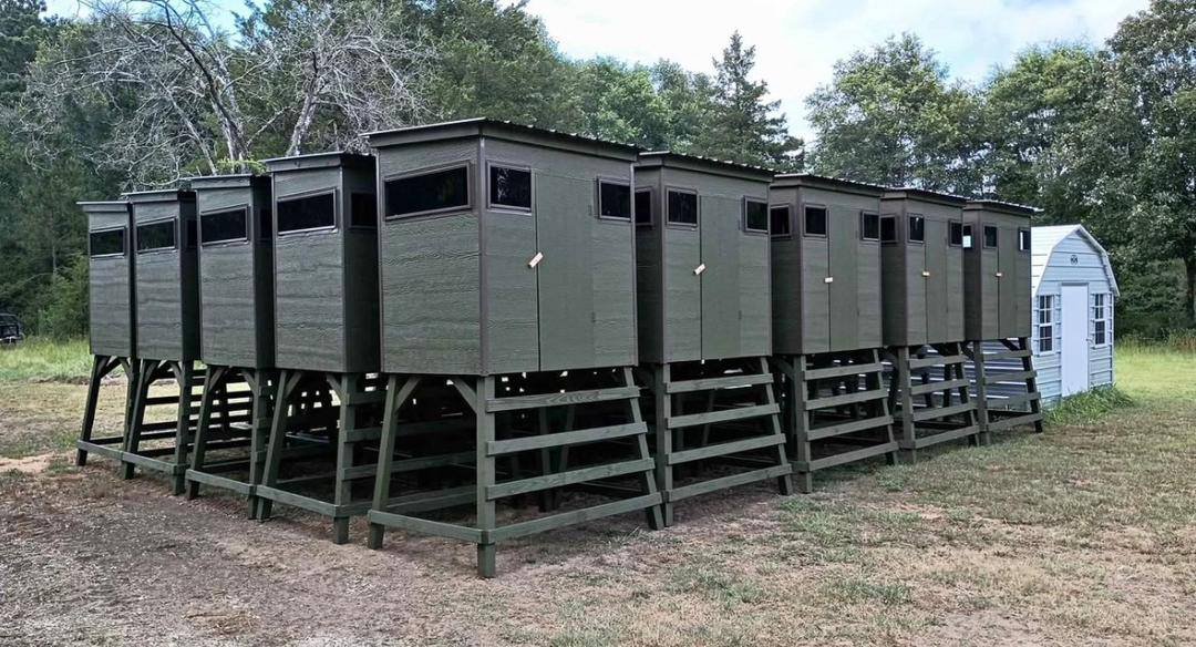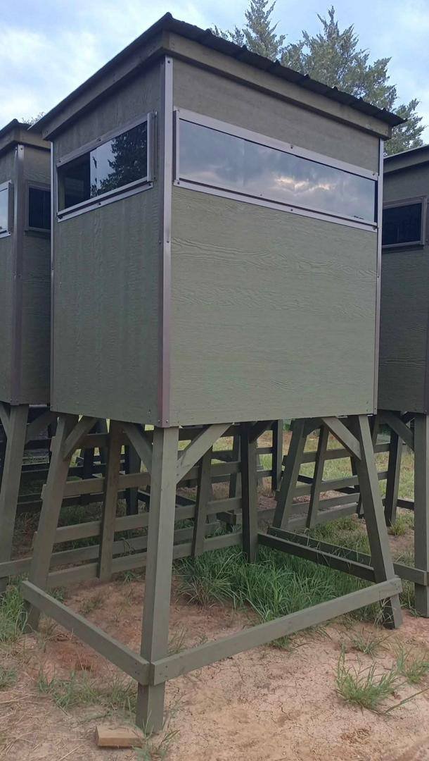 Upgrade your hunting setup with this rugged and reliable Blind Deer Stand Shooting Box, designed for comfort, concealment, and clear visibility in the field. Built on sturdy 5-foot legs with a spacious 4 x 5.5 ft elevated platform, this stand provides a stable and commanding vantage point for successful hunts.